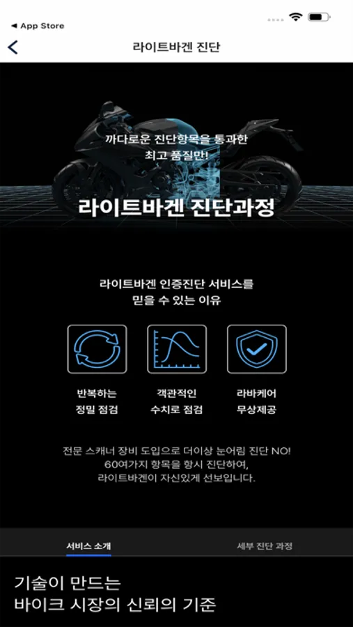 맞춤 진단, 보증, 정비로 인증된 바이크