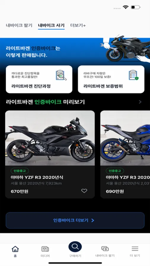 라이트바겐은 중고 바이크 시장의 기준을 만들어가는 브랜드로, 투명하고 공정한 중고 거래 시장 및 문화 정착을 위하여 앞장서겠습니다.