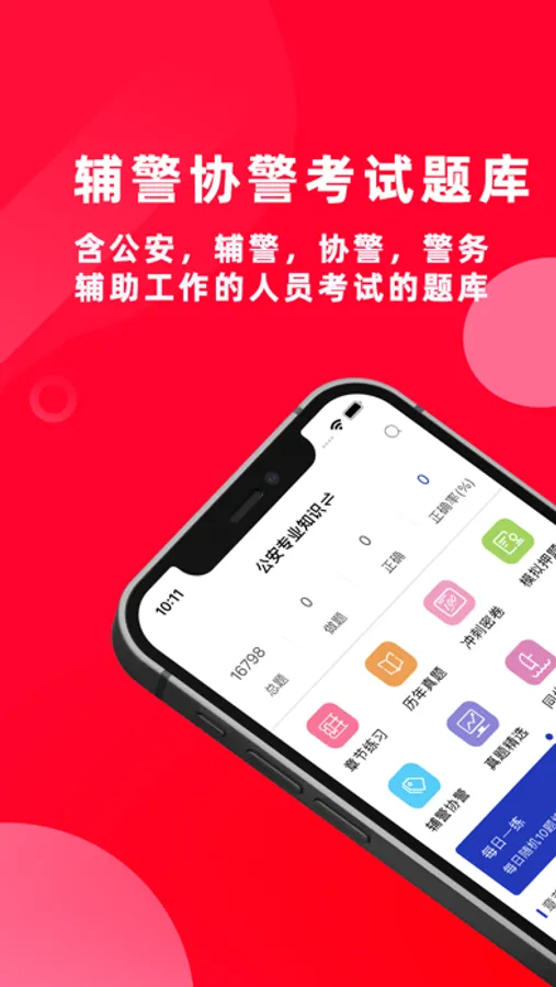 辅警协警考试题库包括公安,辅警,协警,警务辅助工作的人员考试的题库,包括:公安基础知识、法律基础知识、公安专业知识、法律基础知识、公共基础知识、主要执法依据、行政职业能力测验等,章节练习+历年真题+高频考点+摸拟押题,助顺利通关。