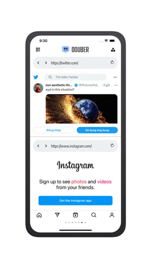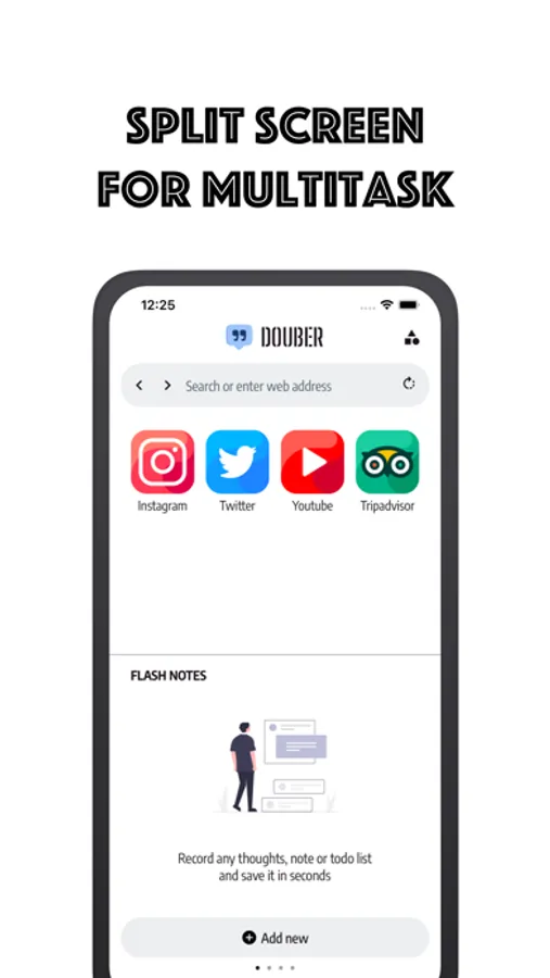With a simple and intuitive interface, Douber is easy for everyone to use right from the start. The top half of the application is an incognito browser, the bottom is Flash note, Calendar, Calculator, PDF Viewer.