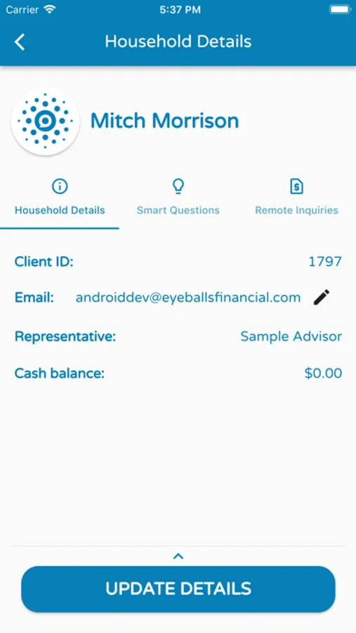 The EB Advisor mobile app is the mobile version of the Eyeballs Financial dashboard that financial advisors access from their web browser.