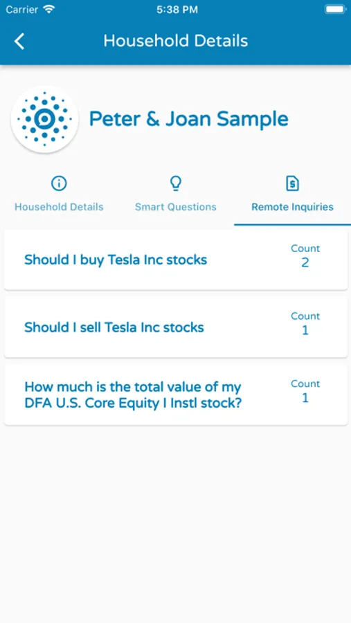 The Remote Inquiries feature contains questions from specific clients that allow advisors to know the issues or stocks their clients are most interested in learning about. This enables them to tailor their stock recommendations accordingly.