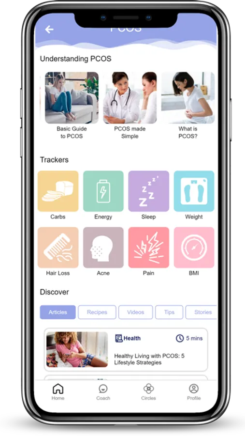 Our nutritionist and fitness experts build a plan around your health goals - be it conceiving with PCOS, losing weight, or treating PCOS symptoms like acne, hair loss, irregular or painful periods, and mood swings.