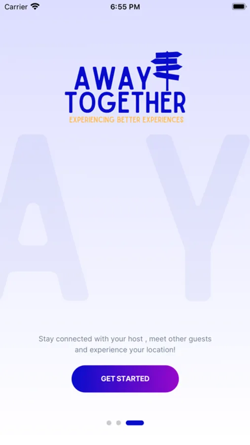 Away Together is a smart/mobile phone application (app) with the capability of enhancing guest experiences while travelling. The app provides a platform that removes the communication barrier between an accommodation, the guest and fellow guests. The app features local attractions such as restaurants, shopping and entertainment and will serve as an all-inclusive mobile concierge.