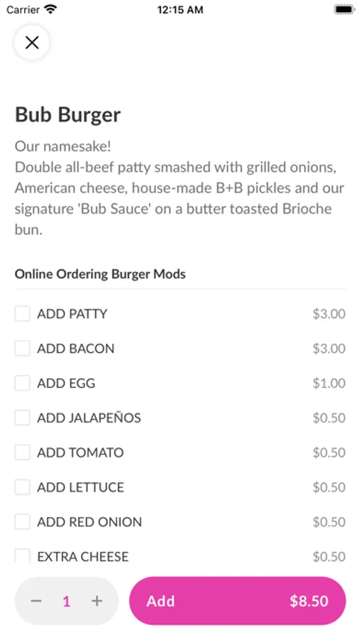With the Bub's Burgers mobile app, ordering food has never been easier. Whether you're looking for a quick snack or a full meal, we've got you covered. Just browse our easy-to-use menu, customize it how you'd like, place your order using our secure payment system, and sit back! A push notification will alert you when your order will be ready.