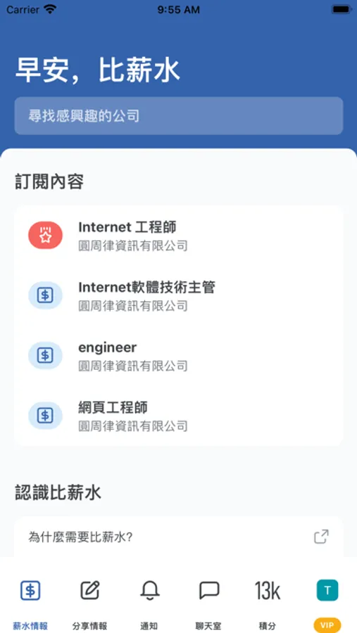 比薪水以「翻轉資訊不對稱」與「薪資透明化」為核心理念,打造「以人為本」的薪資查詢服務,幫助台灣求職者們瞭解自身的市場身價,藉此選擇更好的工作機會。