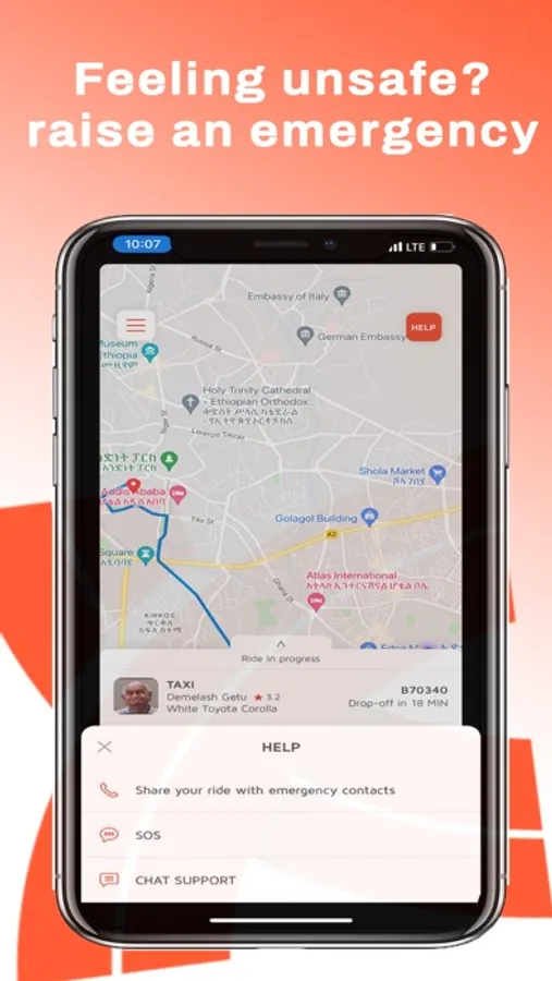 You can call your local authorities directly from the app, and your location and trip details will be displayed so you can quickly share them with emergency services/ contacts.