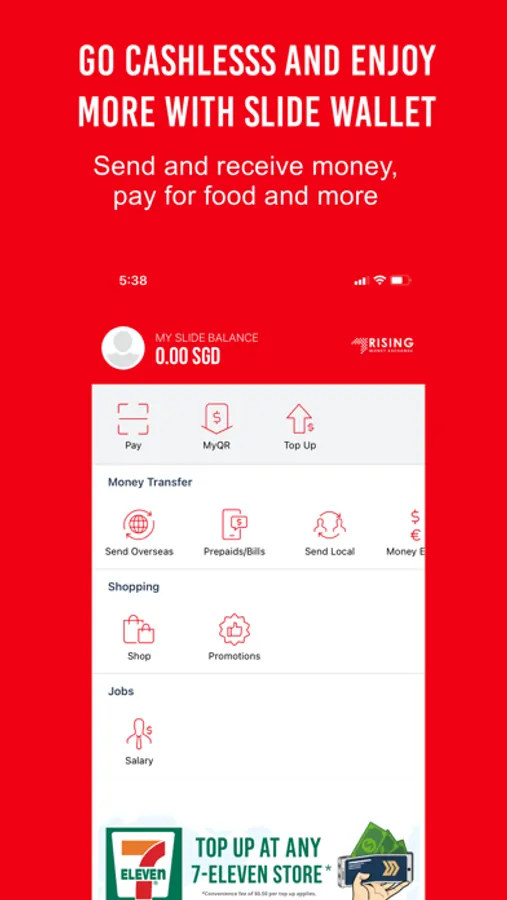 Rising Money Exchange is a Singapore-based mobile wallet in your smartphone, built just for your financial well-being. We believe in providing instant, secured and easy payments, making life awesome! From anywhere in the world, you can send money to your loved ones, top up any mobile number and pay your bills instantly with just one-slide away!