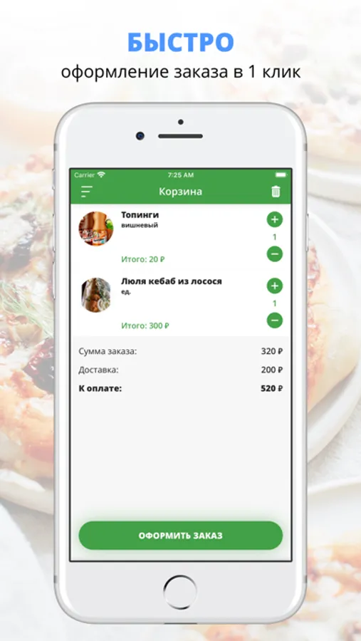Скачивайте наше приложение, оформляйте заказ и наслаждайтесь любимой едой, где бы Вы ни были! Приятного аппетита!