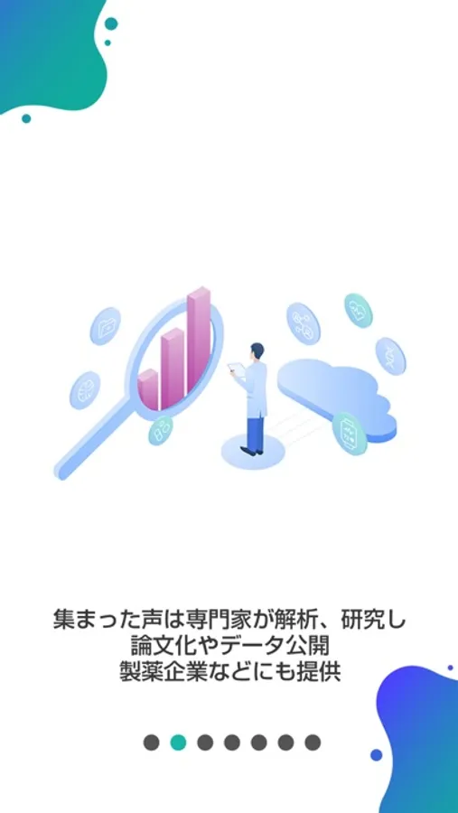 本アプリでは登録していただいた方に様々な病気に関する日々の健康状態や生活に関するアンケートを継続的に配信するePRO機能※です。ひろく一般の方にご回答いただいたアンケートを収集させていただき、そのデータを専門医や研究者などの専門家、製薬企業へ共有し、悩みの解決、そして未来の医療に繋げていきます。