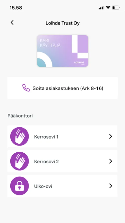 Loihde ID:n avulla pääset kulkemaan Loihteen pääsynhallinnan valvomista ovista helposti ja turvallisesti. Tilojen suojaustasosta riippuen ovesta kulkemiseen saattaa riittää vain kulkutunnisteena toimivan puhelimen tuominen oven läheisyyteen. Tilojen turvallisuustason ollessa korkeampi voidaan kulkemiseen vaatia myös esimerkiksi biometrinen tunnistautuminen tai jopa mahdollisen valvomon tarkistus henkilöllisyydestä valvontakameran kautta.