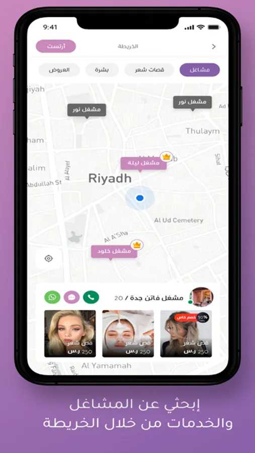 - تحديد موقع الصالون او الخبيرة بسهولة واختياره بسهولة