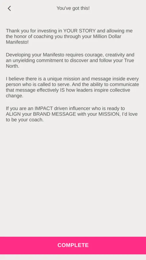 1. Million Dollar Manifesto - Build confidence and gain “It Factor” credibility in the media and marketplace. Create the focus, clarity and confidence you need to level up!