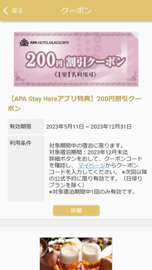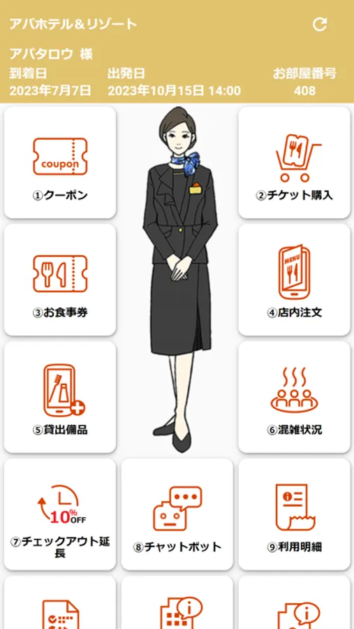 アパホテル宿泊中に、食券購入、備品予約、大浴場混雑確認、限定クーポン取得などができます。