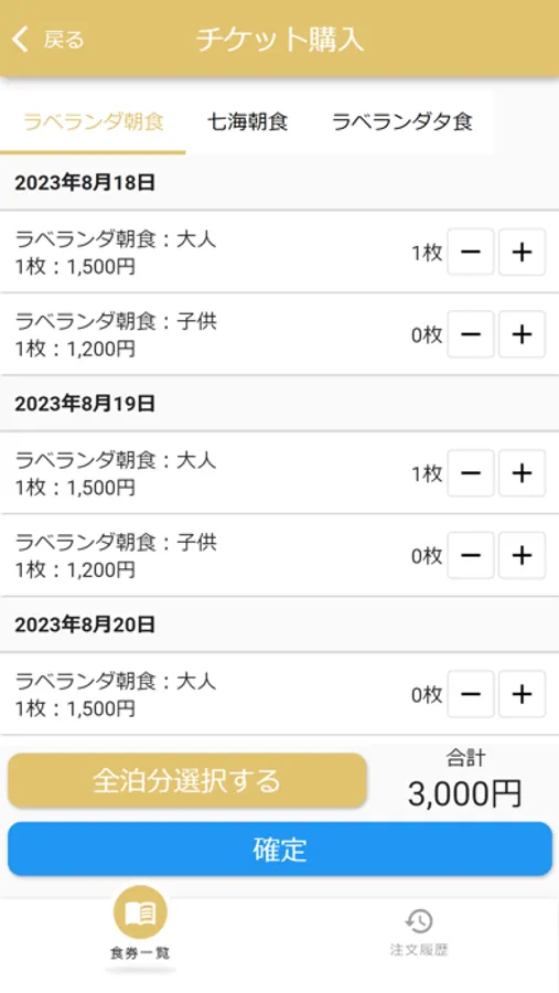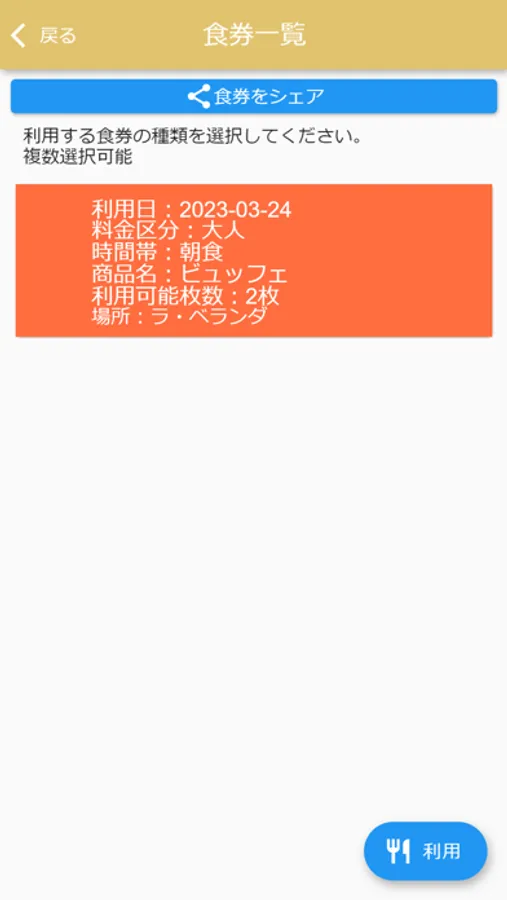 ・滞在中ホテルの食券をいつでも購入可能です。購入後は勿論、事前購入した食券もアプリ上で表示されます。