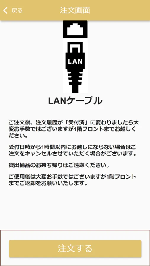 アプリからの貸出備品予約で、フロントへの内線が不要です。用意ができましたら、ご自身のタイミングでフロントまでお越しください。