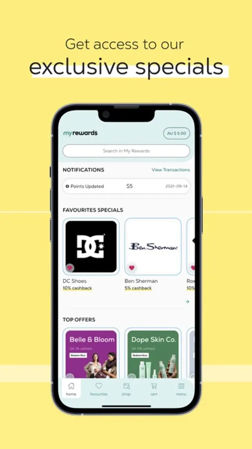 2. Keep up to date with the specials on your favourited products, top offers, and featured brands in home and save all your favourite deals for easy exploring later by simply tapping the heart icon.