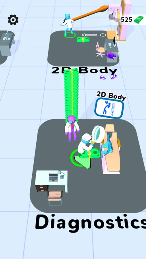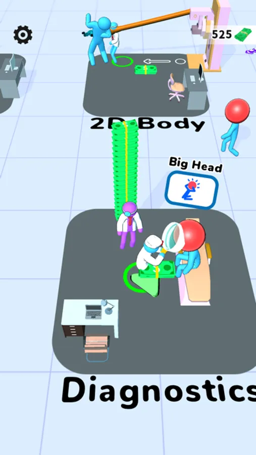 Build your own hospital from ground up, diagnose patients and heal them, hire new doctors, securities and receptionist.