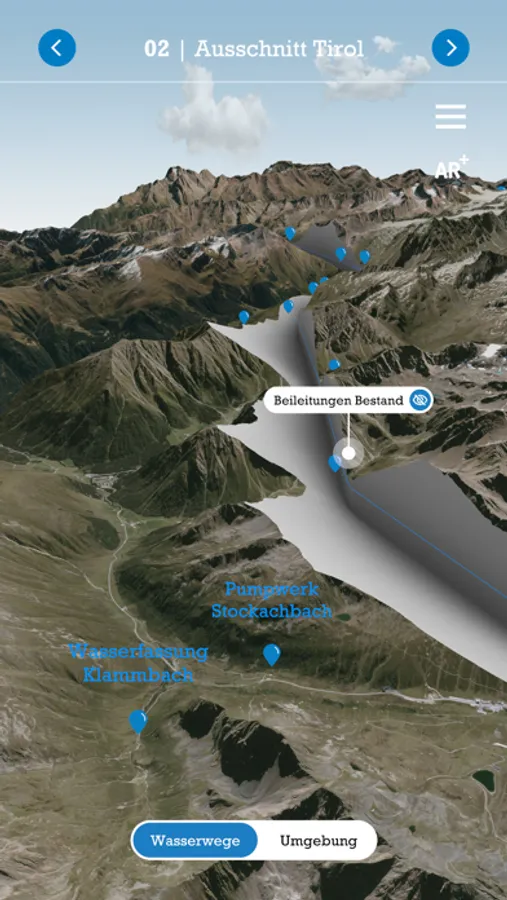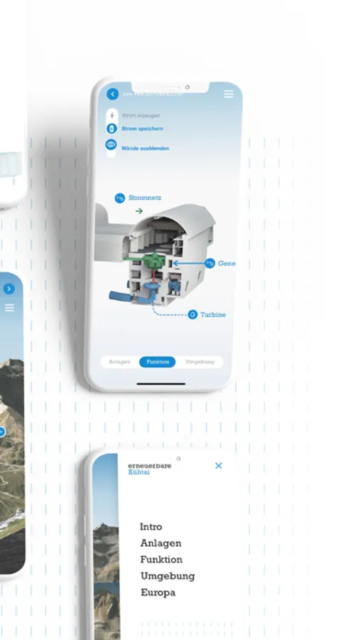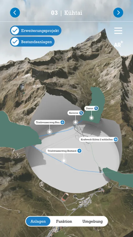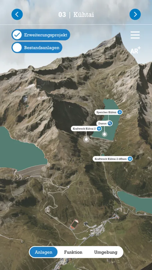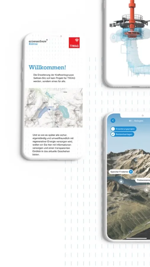 Die mobile App gibt Ihnen dank detaillierter Aufbereitung mittels verständlicher 3D-Modelle einen beeindruckenden Einblick in das Erweiterungsprojekt im Kühtai. Mit dem Erweiterungsprojekt kann erneuerbare Energie zeitlich flexibel erzeugt und gespeichert werden.