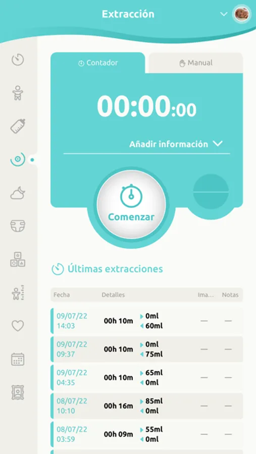 No importa si estás dando el pecho, biberón o comida sólida, registra todo lo que come tu bebé para hacer un seguimiento de su correcta alimentación. Además, podrás añadir todas las extraciones para mantener una pauta correcta y optimizar la cantidad de leche materna extraida.