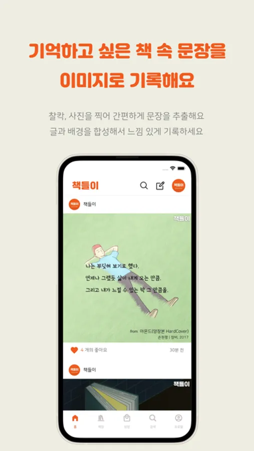 글과 배경을 합성하여 책 별 핵심 문장을 한 눈에 모아볼 수 있어요.