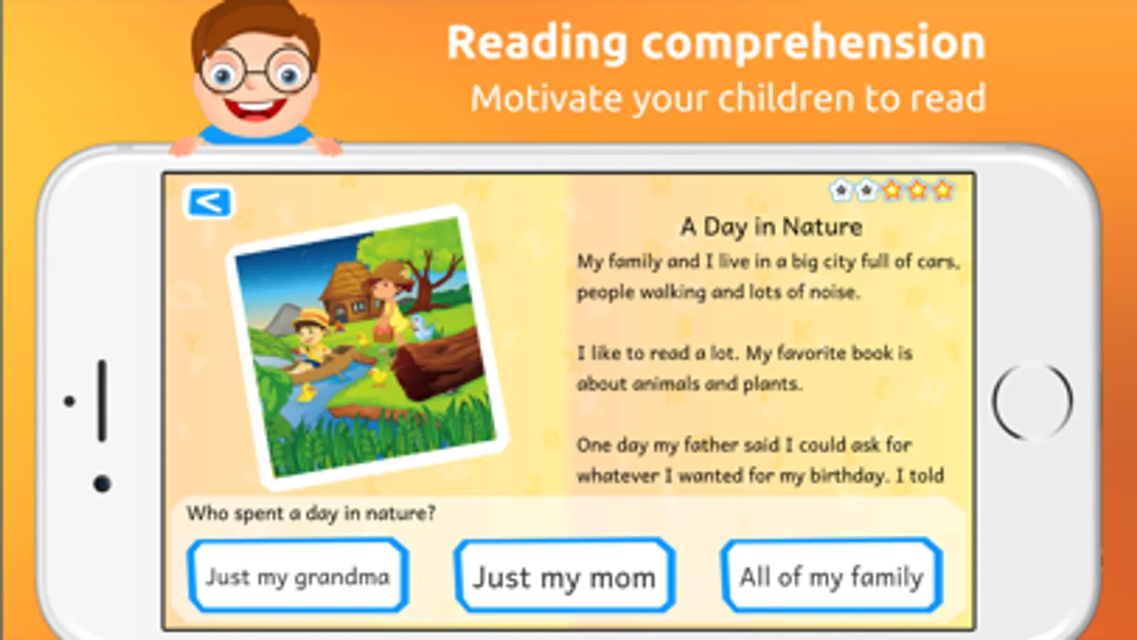 Reading becomes a fun game of discovery in this reading comprehension app designed for kids, no wifi necessary.