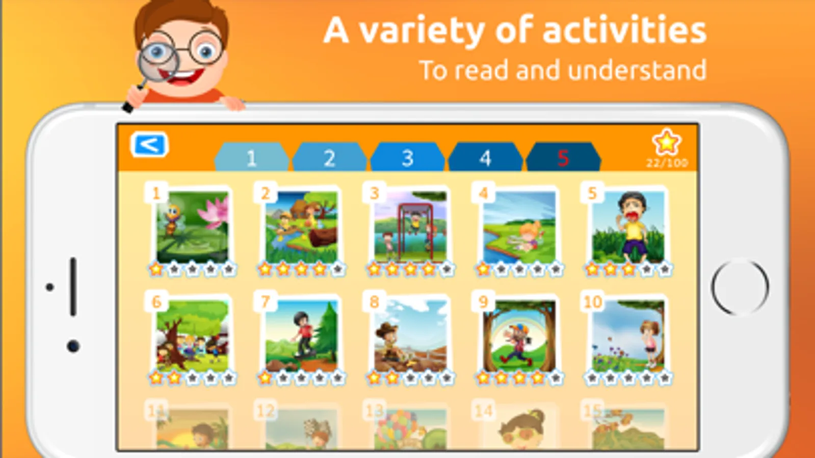 I Read Basic game includes 5 levels: