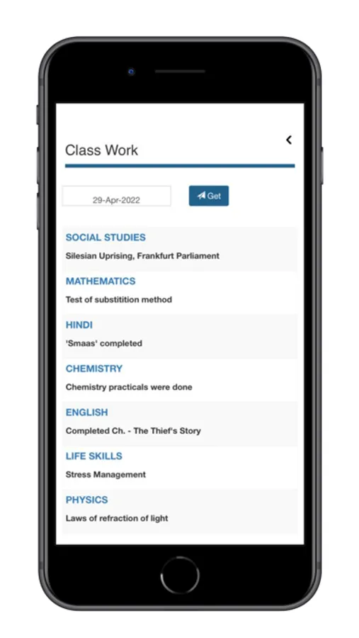 Parents/students can view and download activity calendar, circulars, assignments, transport details, time table, syllabus, & question bank.