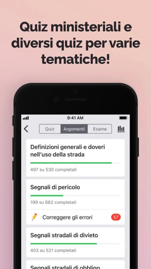 L’app non sostituisce la scuola guida, ma rappresenta un quiz di autocontrollo in vista dell'esame. Per una formazione completa e di qualità, rivolgiti a una scuola guida.