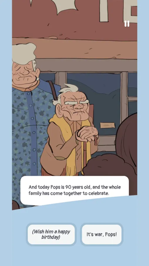 Family Bash tells the timeless story of the Family – the one we love, cherish, insult and despise. You arrive in the village hall of a small French town out in the sticks in Normandy to celebrate your grandfather’s birthday: he’s 90 years old, still “all there” and is the living memory of your family. Just as the party is shaping up to be fun, you find yourself at the centre of an intergenerational conflict with unforeseeable consequences. You begin to uncover the dark secrets and ulterior motives of the various members of your family. In Family Bash, a seemingly insignificant choice can change the relationships between your family members forever. So explore your surroundings and make choices, talk to your cousins, confront your uncle and find out about that mysterious will – for better or for worse.