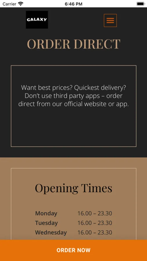 With our app, you can now order DIRECTLY from your phone in seconds. Use our app to order your takeaway and enjoy a growing number of benefits! Taste the difference at Galaxy Takeaway.