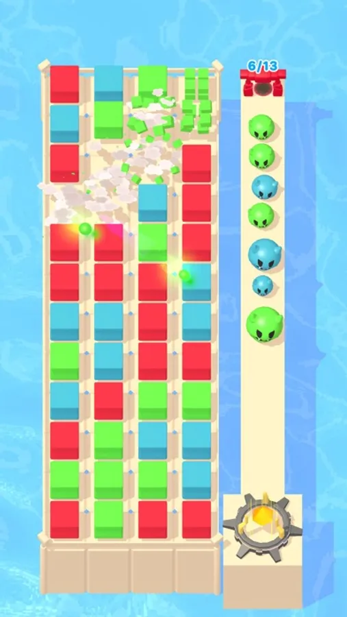 Tap on the blocks of the same color to make them explode and destroy all the blobs that are trying to attack you!
