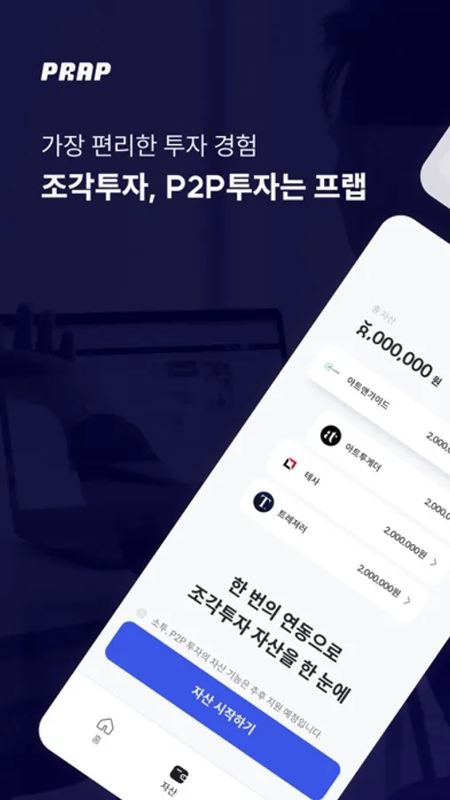 ‘내 자산’에서 각 조각 투자 플랫폼 계정을 연동하고 흩어진 자산을 편리하게 모아보세요.