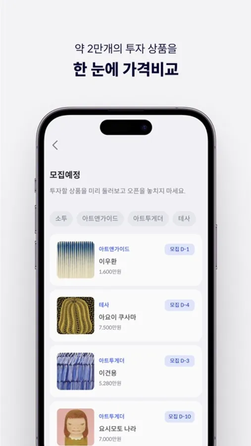 투자 일정 별 모집 예정, 모집 중, 모집 마감 상품을 둘러보세요.