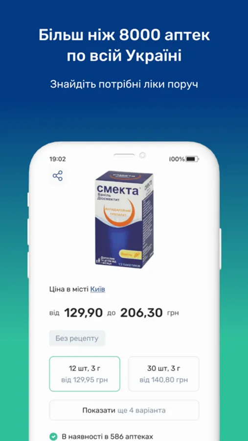 У додатку Ви знайдете понад 8 000 аптек у всіх містах України. Мобільний додаток Apteki.ua - бронюйте ліки в аптеках поруч та заощаджуйте до 30%