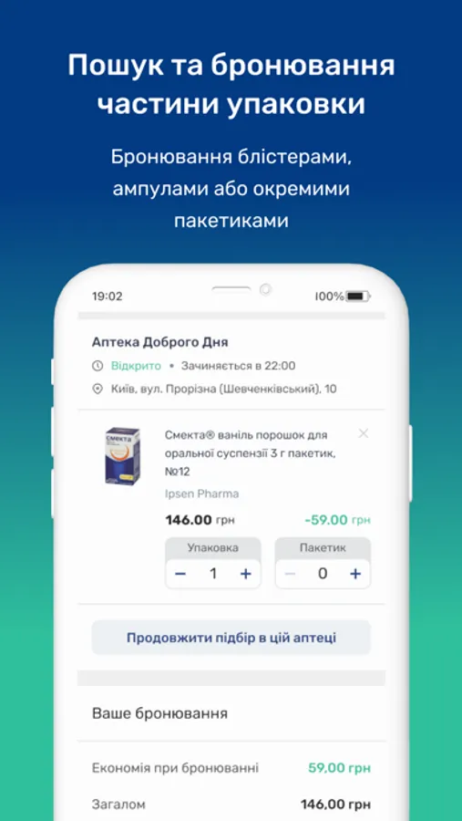 - Бронювання частини упаковки (ампули, бластери, пакетики)