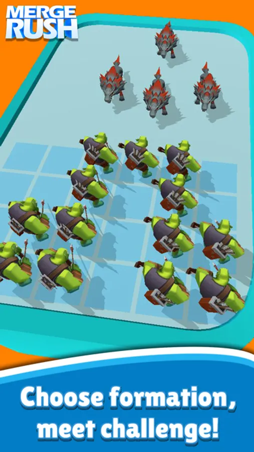 Merge Rush is a fun game with merge game play. Merge fighters of lower level to get higher level and become stronger to win the battles.