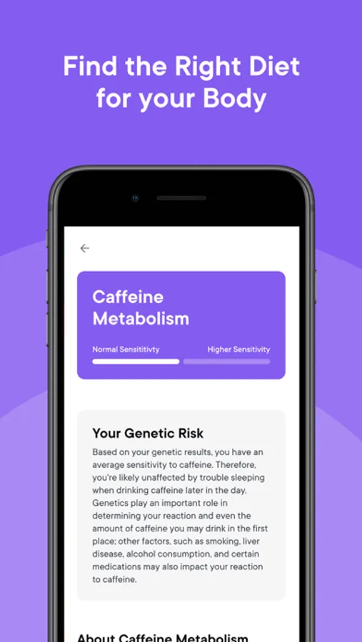All our recommendations are divided into easy-to-navigate categories: get reports of disease risks, suggestions on how to align your lifestyle with your health goals, and learn more about your genetic origin.