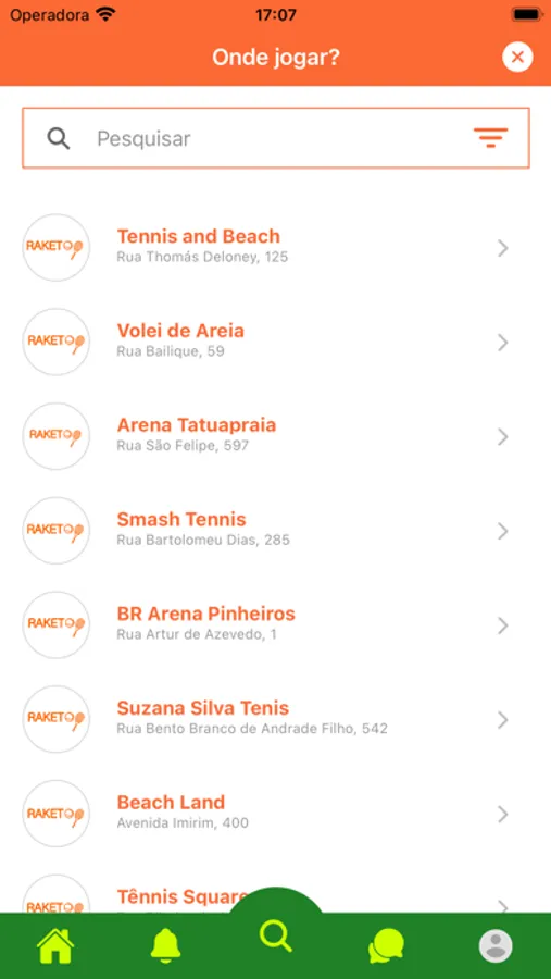 - Localização das quadras