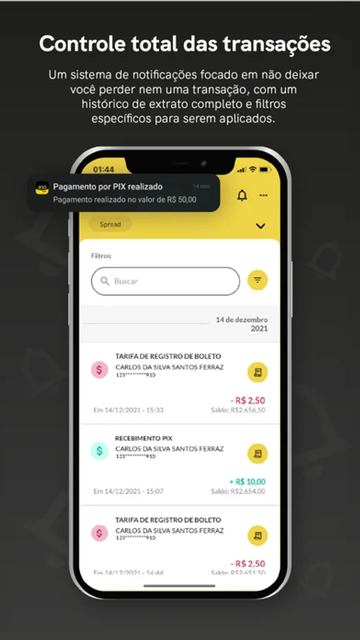 Controlando gastos, transações, transferências, pagamentos e emissão de boletos de forma intuitiva e integrada.