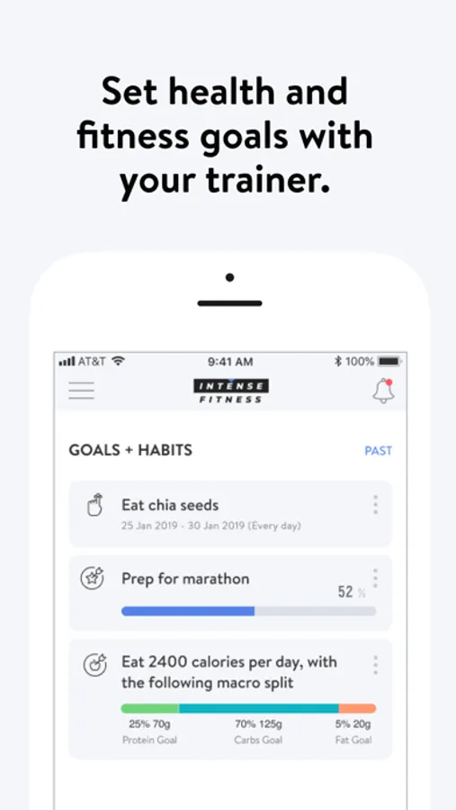 With the Intense Fitness App, you can start tracking your workouts and meals, measuring results, and achieving your fitness goals, all with the help of your personal trainer.