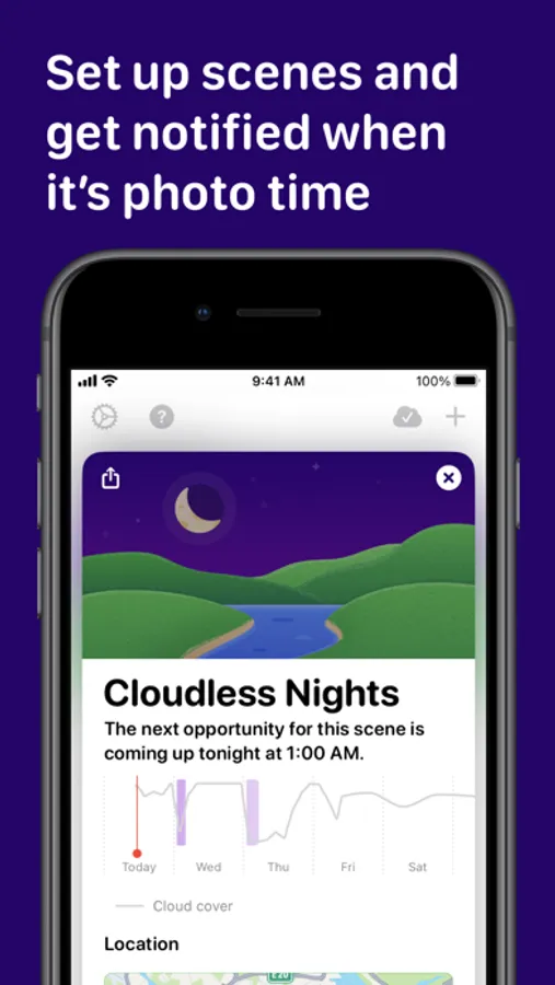 • If you love the night sky, Photo Scout lets you capture the cosmos with cloud cover, aurora, sunlight cycle, and moon requirements.