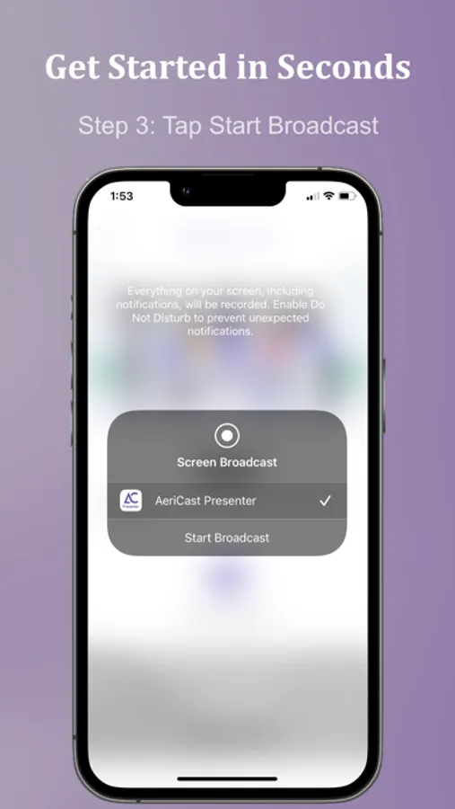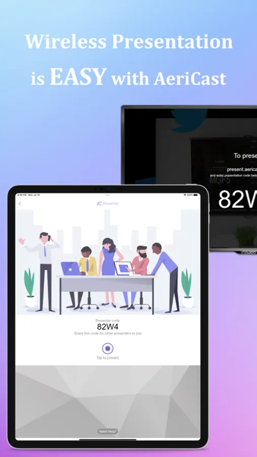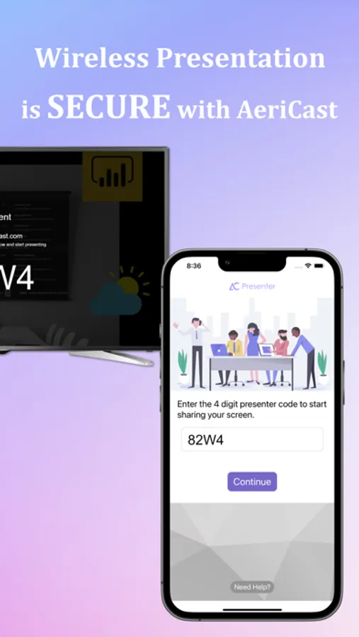 You can wirelessly present your iPhone or iPad to any screens with the AeriCast Receiver app installed. It is easy and secure! You can simply input the 4 digit presenter code displayed on the screen in this Presenter app and wirelessly cast your device to the screen.