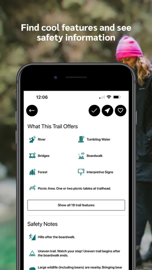 - Detailed safety information so you know things like whether you should bring bear spray or avoid the trail in the winter because it is in an avalanche zone.