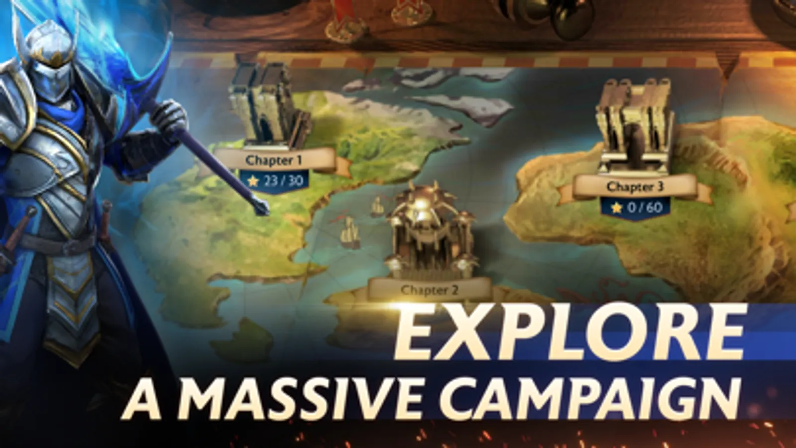 See every detail on your warriors’ faces and experience every scratch in their armor. Behold the sharpness of daggers, the pierce of arrows, and the magic of spells. Feel the power of every hit with cinematic animations and effects.