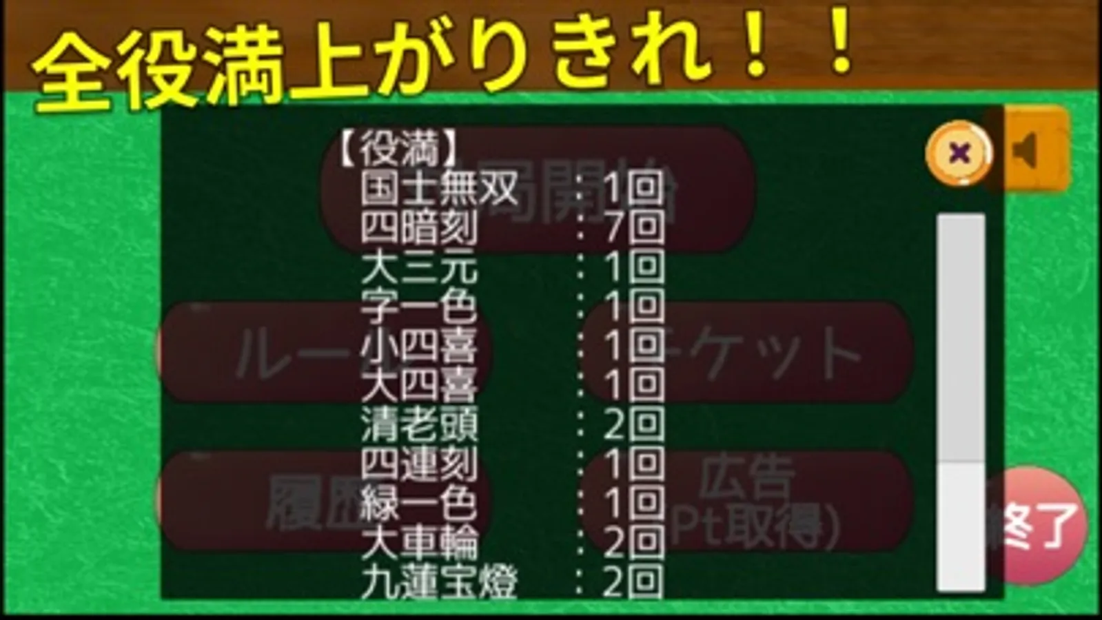 また、手役達成数も履歴で管理しているので全ての役、役満を出してみよう!