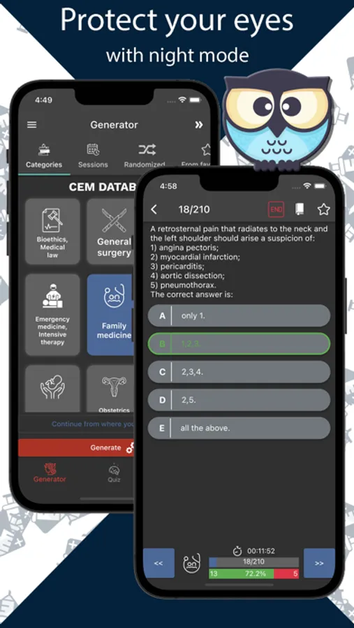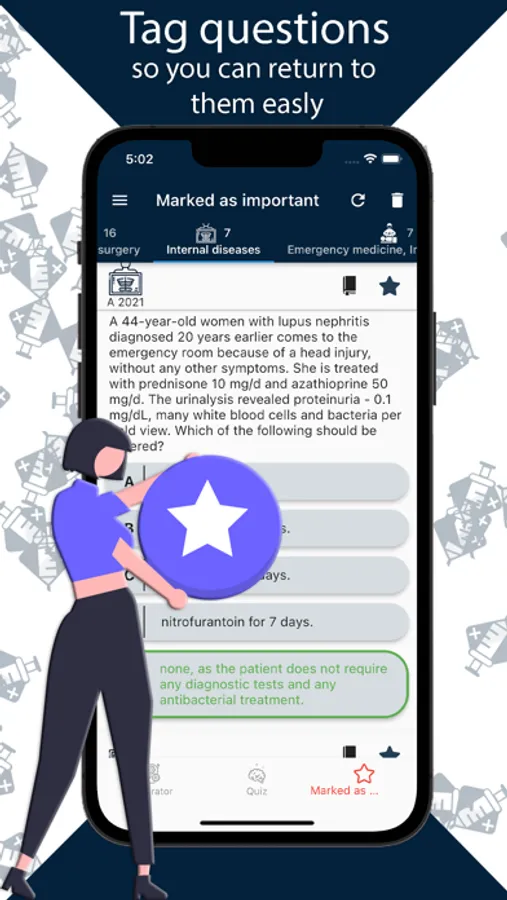 Questions with explanations preparing for the LEK. Possibility of quizzing with other users!