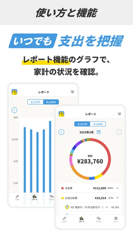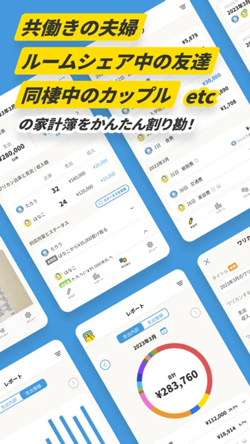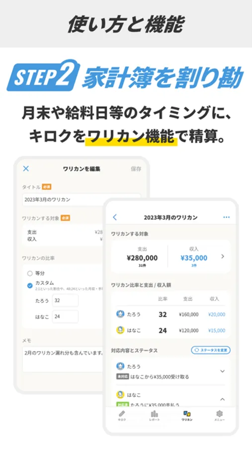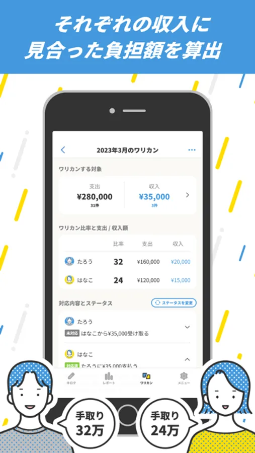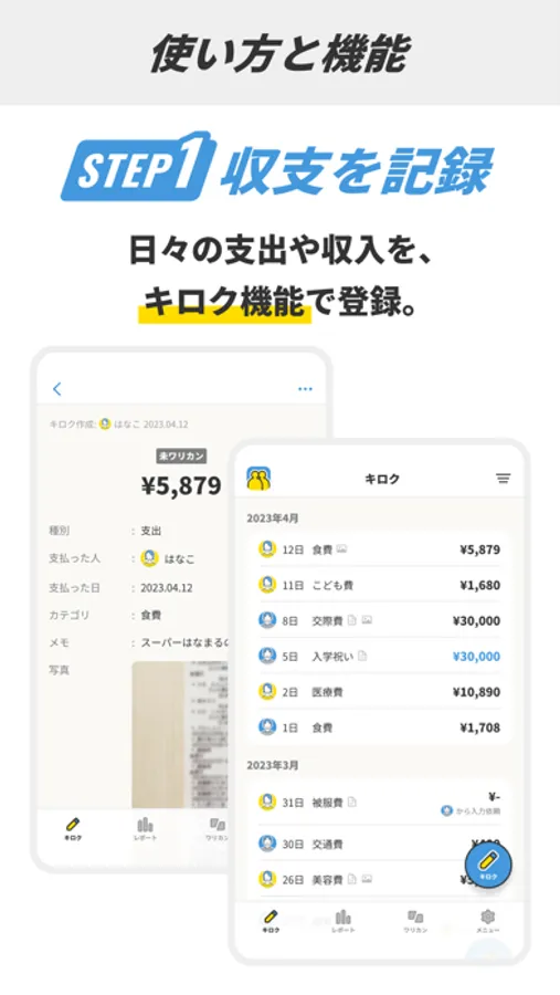 Each roommate registers expenses for food, utilities, etc. on the app.