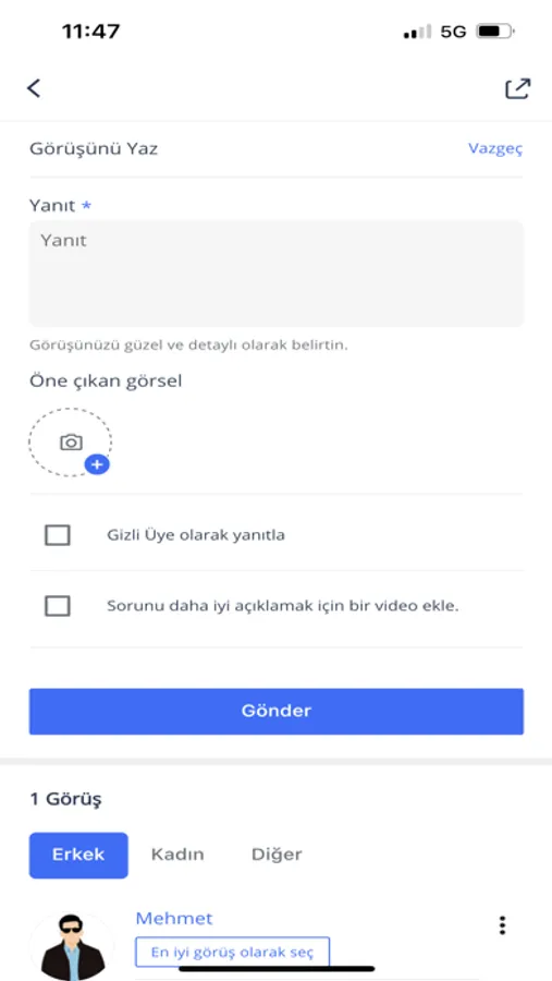 * Bir soru sorun ve farklı görüşler alın