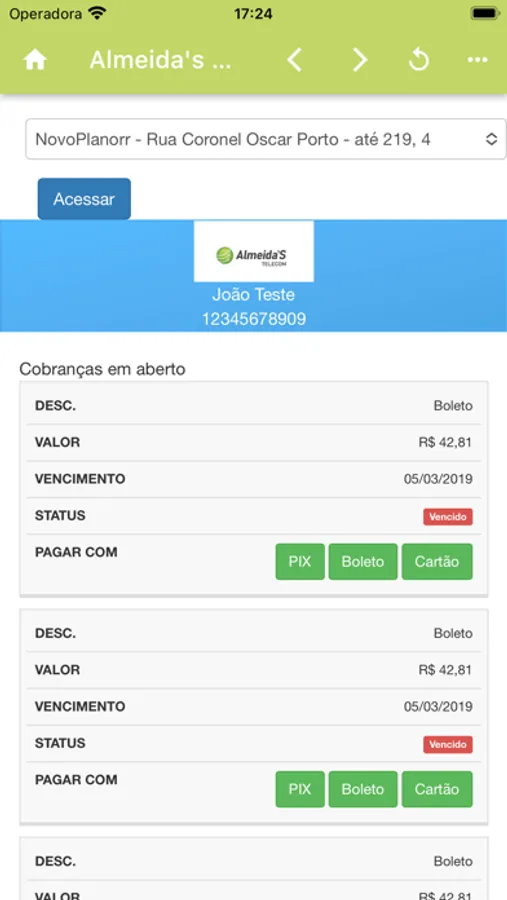 Central do assinante Almeida`s Net